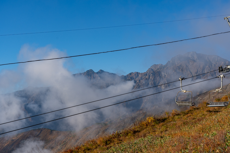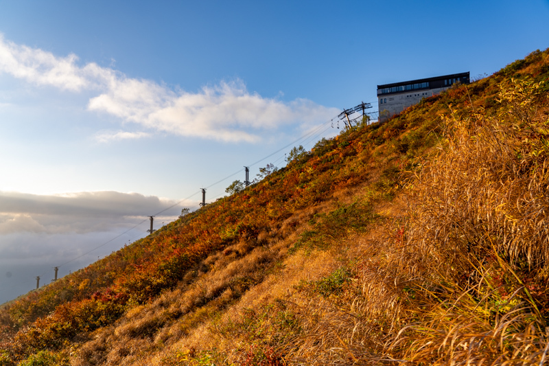 まだ運行しないクワッドリフトのぶん、草紅葉の中を登って行くと