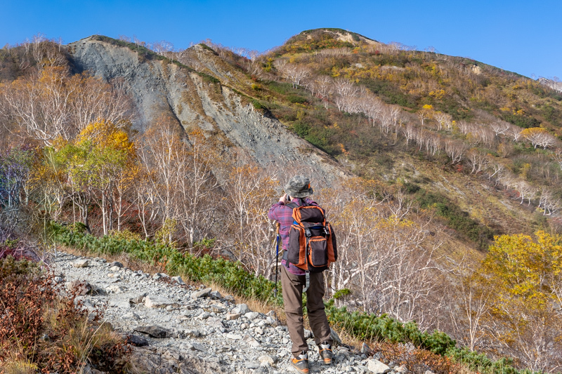 ダケカンバの白と黄色、ナナカマドの燃える紅
