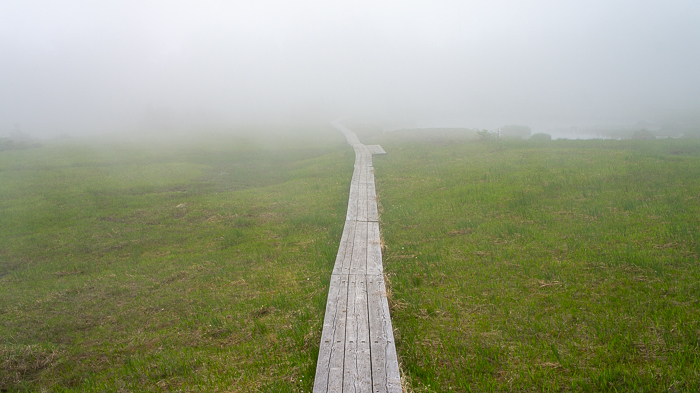 空が近くなっていると気付いた頃、木道が現れ、やがて突然視界が広がる