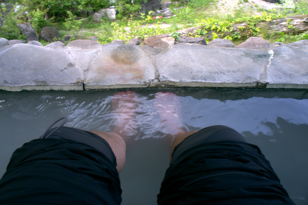 白濁の温泉に浸かって、ビア飲んで、また浸かって