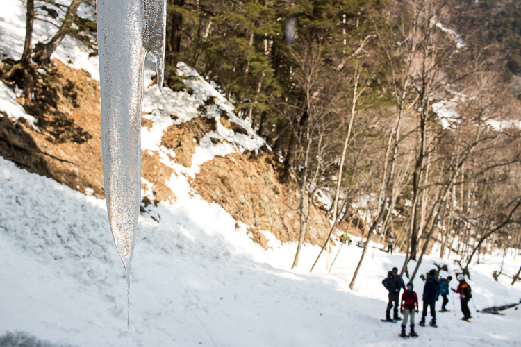 下山する人たちに尋ねると、まだ氷瀑は残っているそうだ