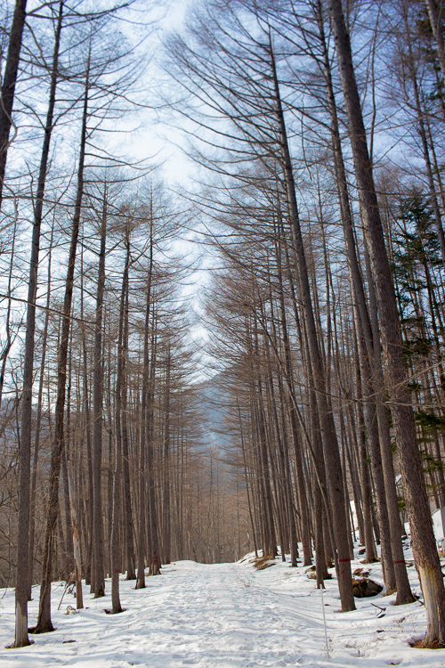 雪は溶けても春まだ遠く、凍て付く奥日光の山たちも寒そうだ