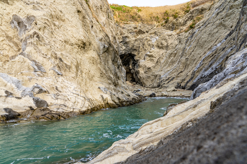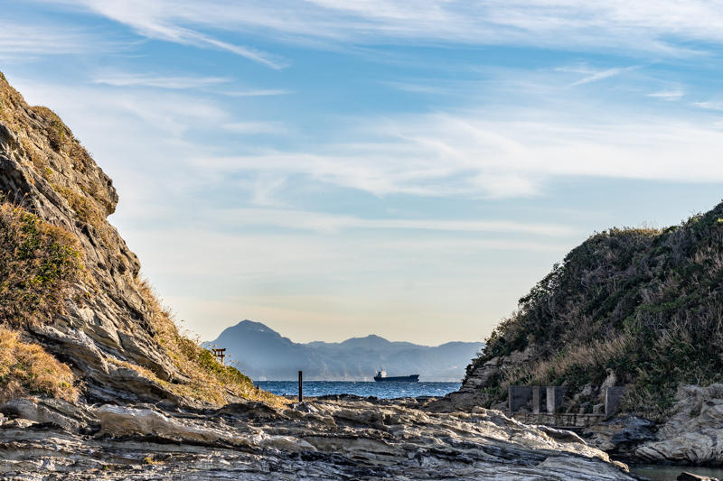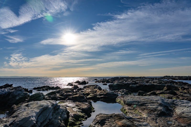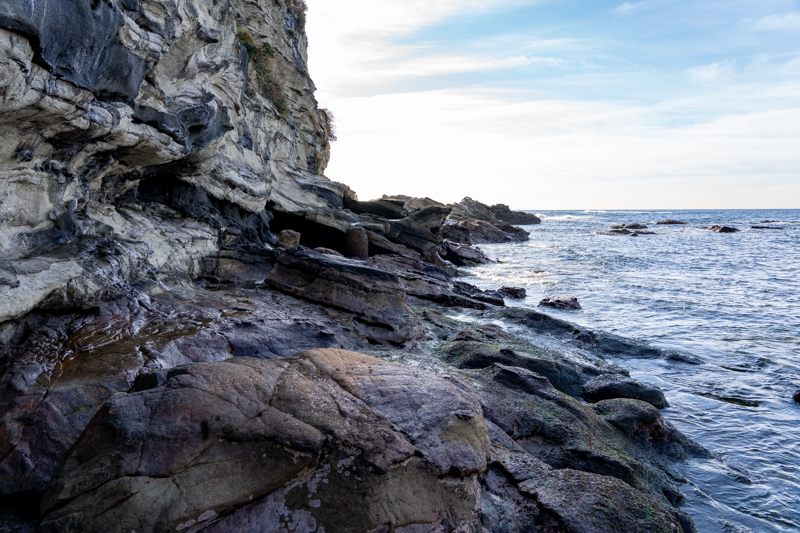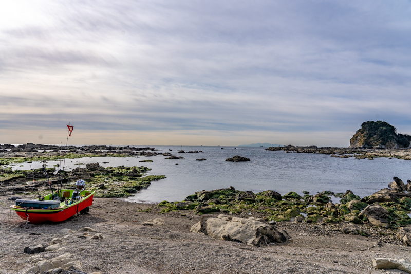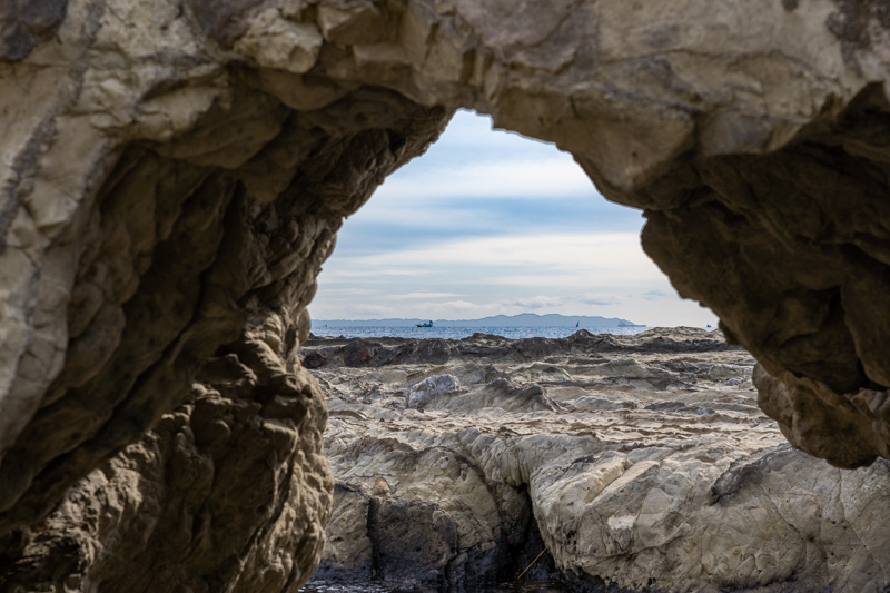 漁港を抜け、小さな砂浜を回り込むと、そこはまさに岩礁