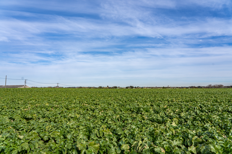 見渡す限り青い葉が揺れる畑の中、ほぼ畦道サイズの路を海岸線へと下る