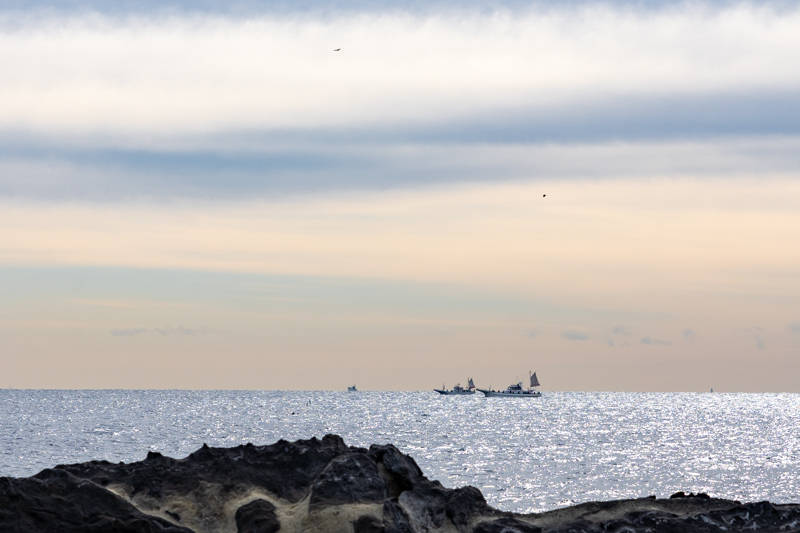 軽い疲労感と岩礁の迫力が余韻となって、とぼとぼ港へと回り込むと