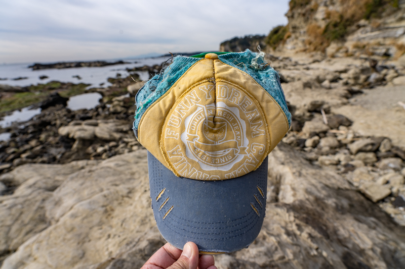 今日のビーチ・コーミングでいちばんの獲物はこの帽子