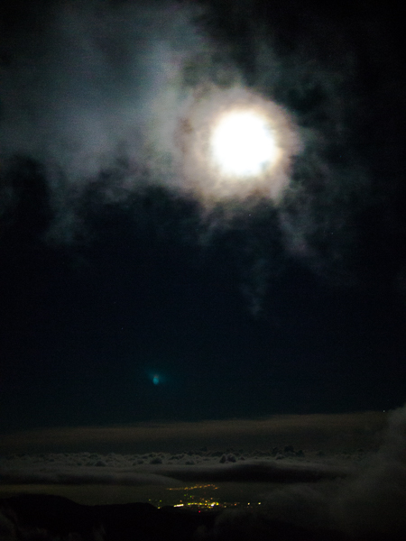夕食前にはガスで覆われていた空が晴れ、高い高い空に月が出ていた