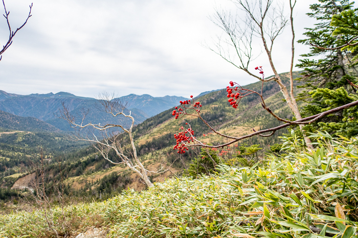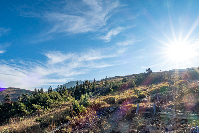 徐々に明るくなるトレイルには、輝かんばかりの紅葉