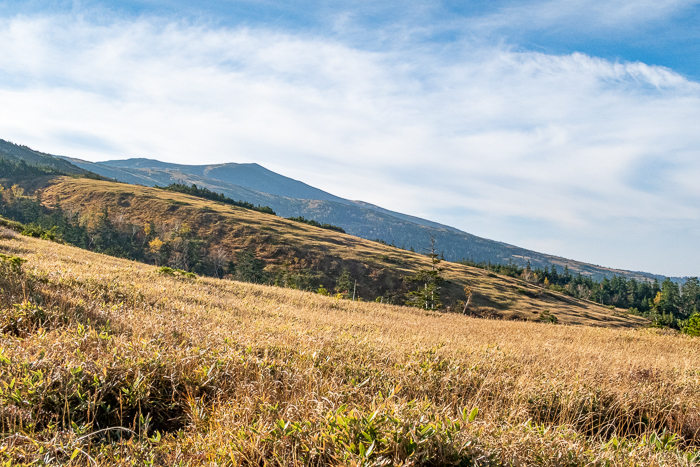 じゃ小屋閉め前の雲ノ平、冬枯れの台地から薄っすら白くなった