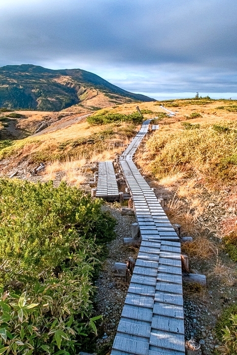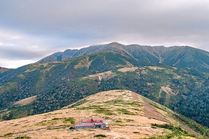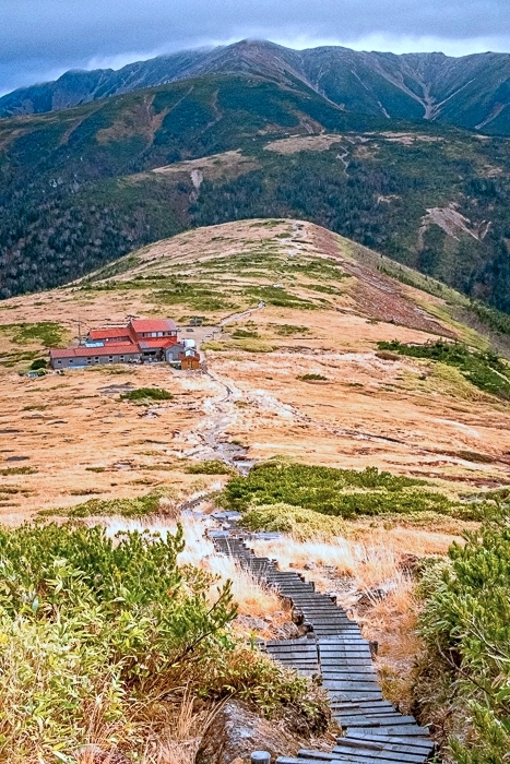 これから向かう稜線上、もうスゴも五色も小屋は締まってること