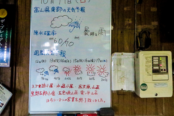 10月の黒部から下山した数日間