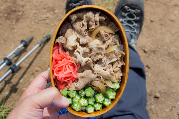 今日の山ごはん 白砂山で牛めし弁当