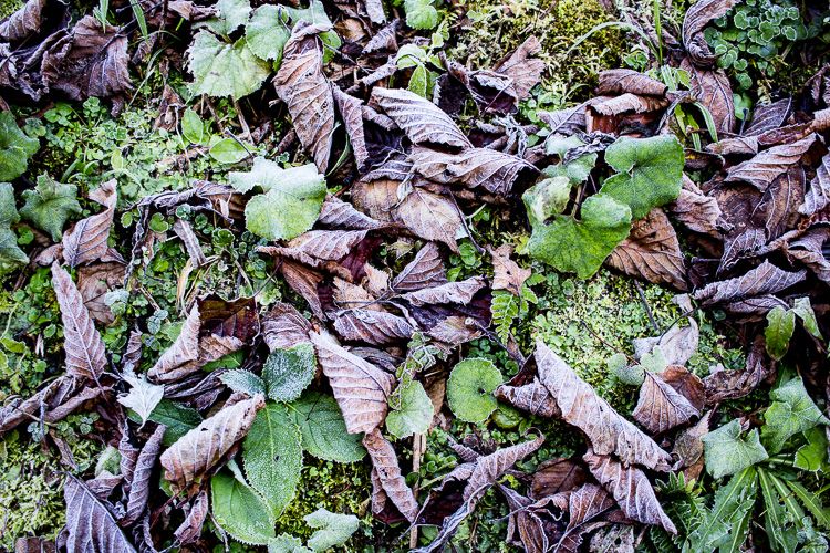 凍る落ち葉を踏む音だけが林道に響く