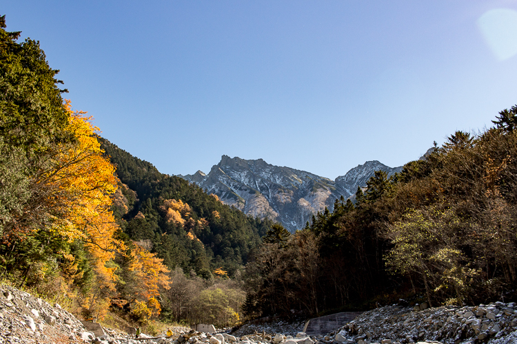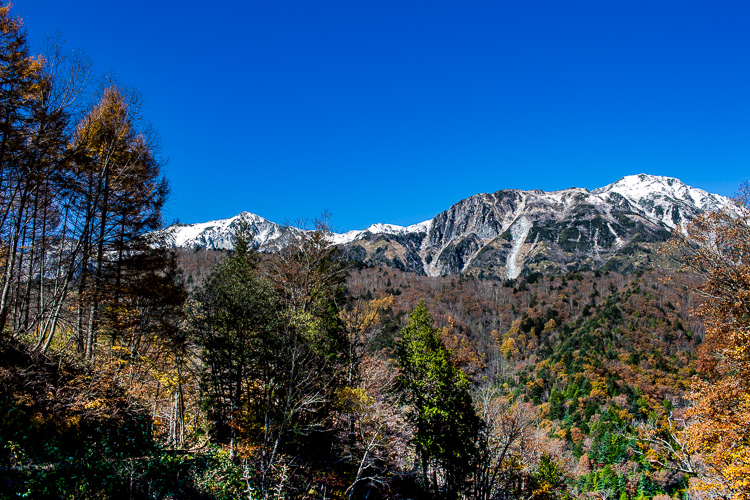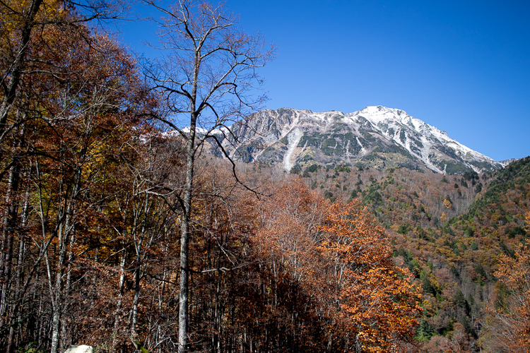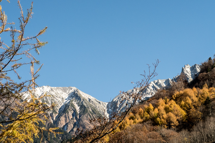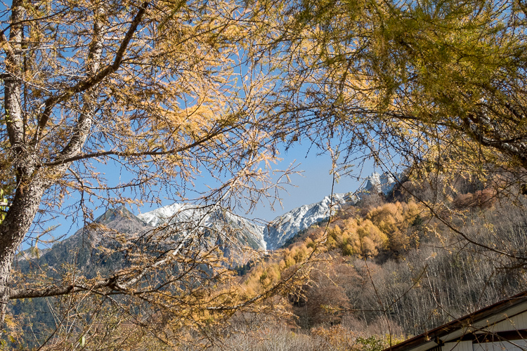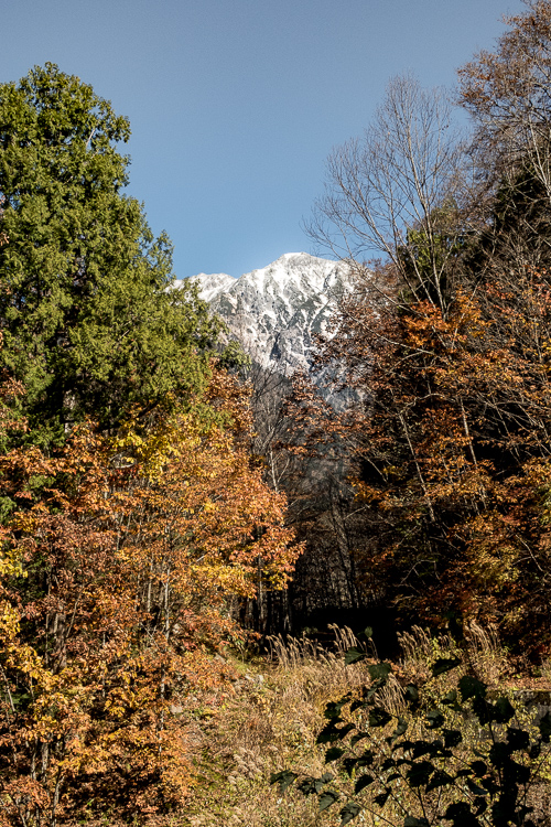 新穂高からの右俣林道は、晩秋から初冬へと移ろい