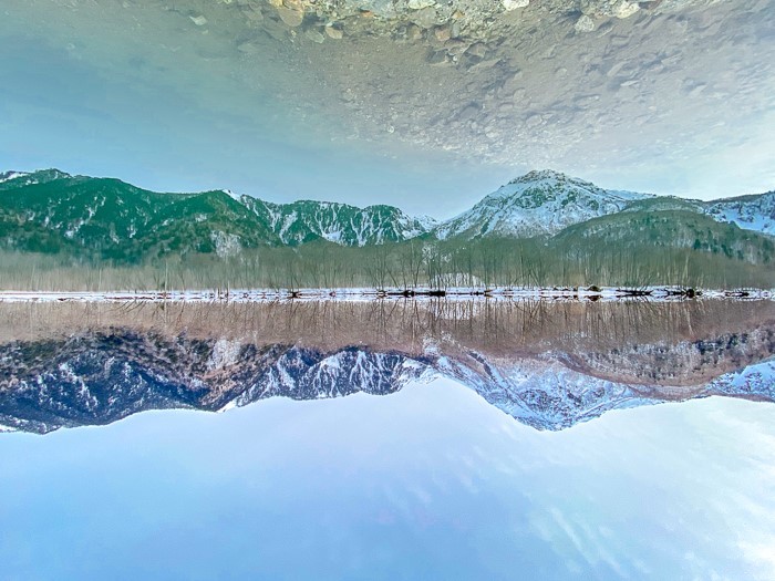 iPhone11pro 超広角レンズで撮る 上高地・大正池リフレクション