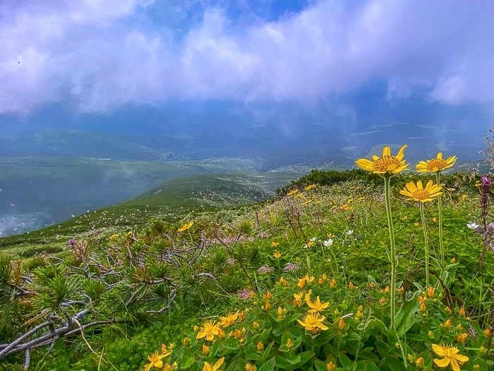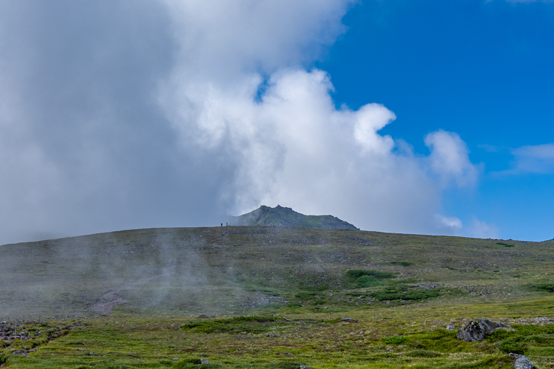 ガスに煙る花の山 富良野岳